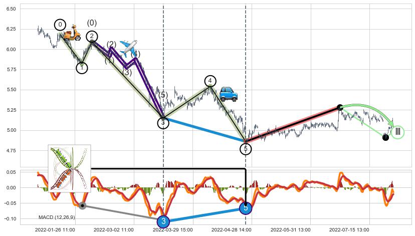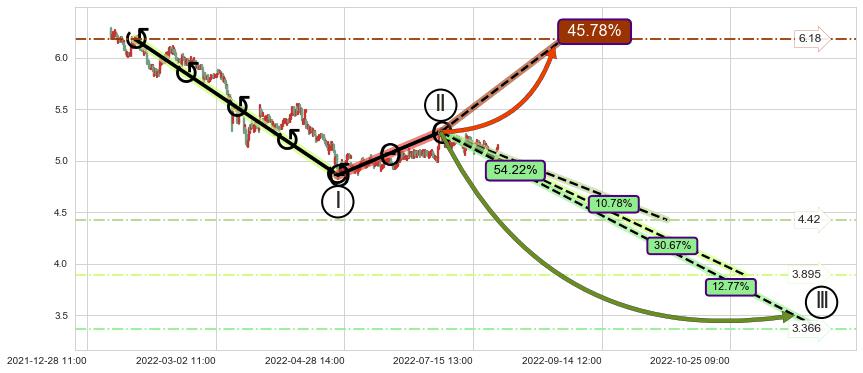 ➢ 循环浪继续向下【最低】位置(11-22:10, 3.366),匹配聚类样本比例23.55%, 可能性概率12.77%