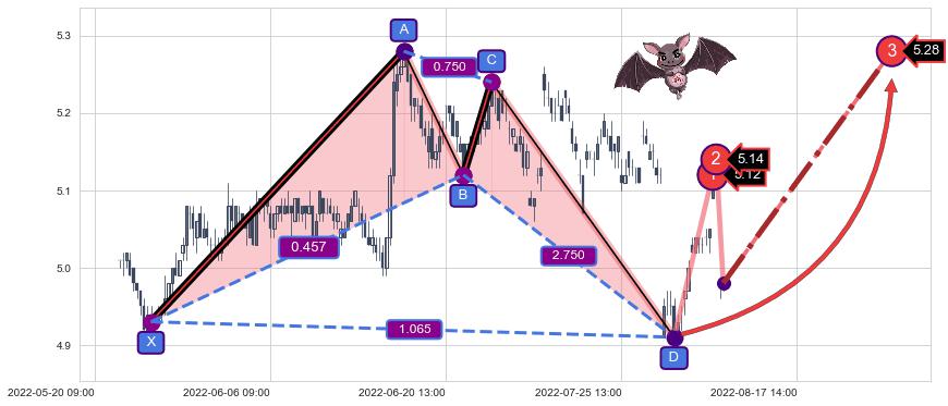➣ 已完成【蝙蝠】形态起点X: 05-25:10, 终点D: 08-03:14, 共150交易小时