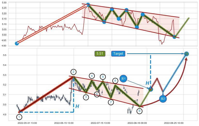 ➣ 最小中继整理涨幅→𝐇: 0.36000 (𝐇旗杆的长度:旗杆起点→顶点)