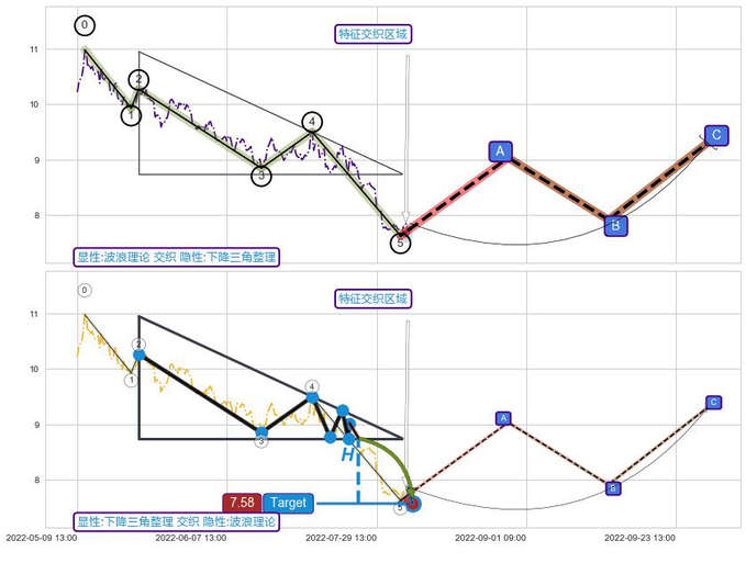 ➢ 波浪理论与下降三角整理信号事件周期长度级别相同,同周期信号事件