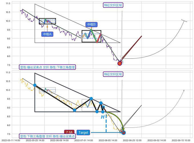 ➢ 缠论买卖点与下降三角整理信号事件周期长度级别相同,同周期信号事件