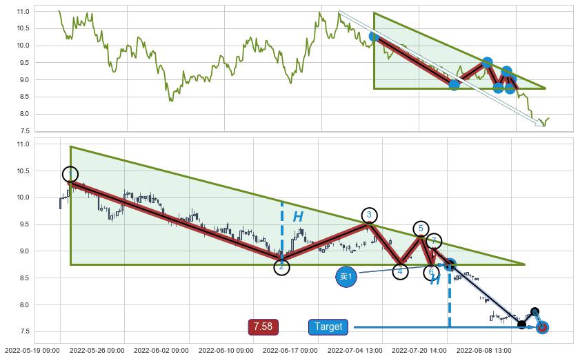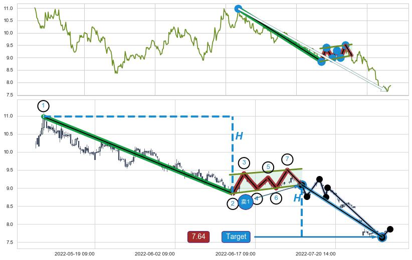 ➢ 【已达成】最小【整理】第一目标价格→(08-10:13: 7.64 ), 后续继续【整理】下跌动力依然存在,下跌空间适中