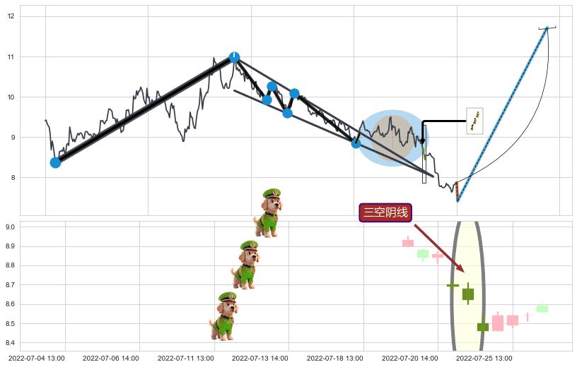 ➣ 收盘价(06-22:14: 9.06 )→回踩→第一根k线高点(06-20:14: 9.15 )