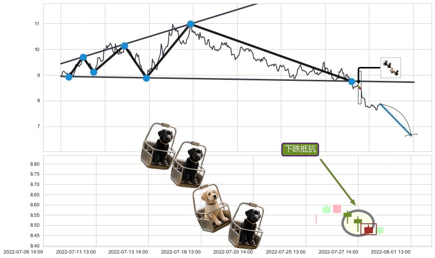 2022-07-07: 第一阻力位9.02进行了长时间的支撑作用。