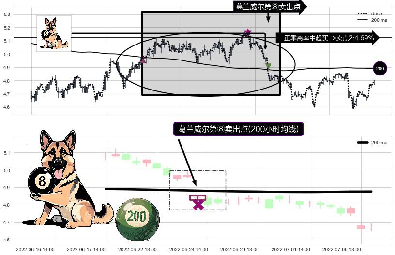 ⚀ 2022-06-24 13:00:00-小时显现 葛兰威尔均线 200小时均线 第⑧卖出点 下降趋势的中继信号,后市看跌,卖出信号