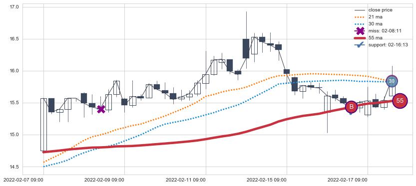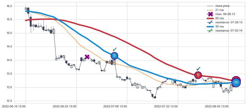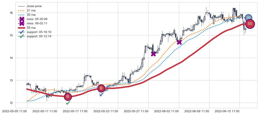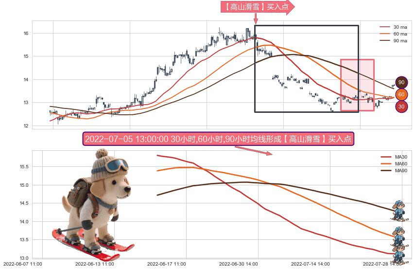 ⚀ 2022-06-15 14:00:00小时-2022-07-27 14:00:00小时显现 30小时-60小时-90小时均线 【高山滑雪】买入点 看多信号,后市看涨,买入