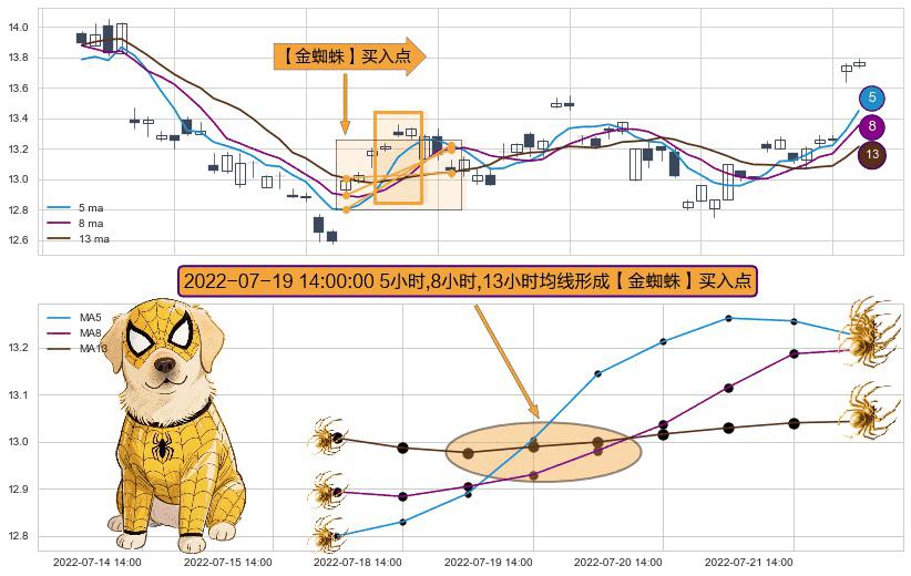 ⚀ 2022-07-19 14:00:00小时显现 5小时-8小时-13小时均线 【金蜘蛛】买入点 看多信号,后市看涨,买入
