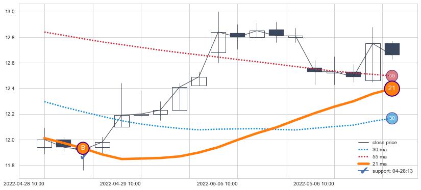 ⚄ 在突破点附近立即马上出现ma上翘点:{},跌势转换涨势展现坚决,信号【可信度中等偏上】