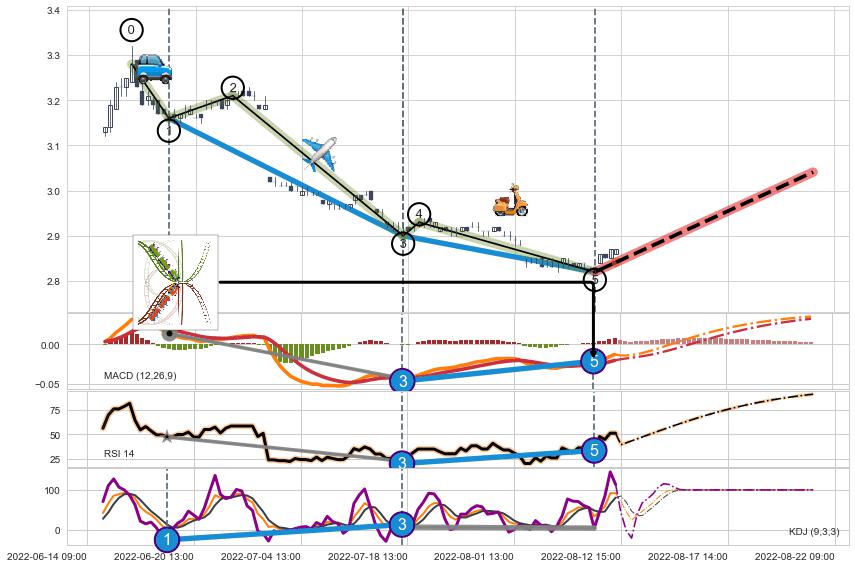| 3 🅚:【高山滑雪】买入点 ➕ 🌊:波浪理论猜想下跌浪5已形成,猜想后续形成abc反弹上涨(均值回复) ☞ 看多信号 ⇥ 【均线】交织【图形】⇥ 综合量化分数: 52 | > |