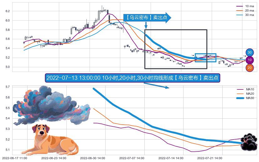 ⚀ 2022-06-29 13:00:00小时-2022-07-26 14:00:00小时显现 10小时-20小时-30小时均线 【乌云密布】卖出点 看空信号,后市看跌,卖出