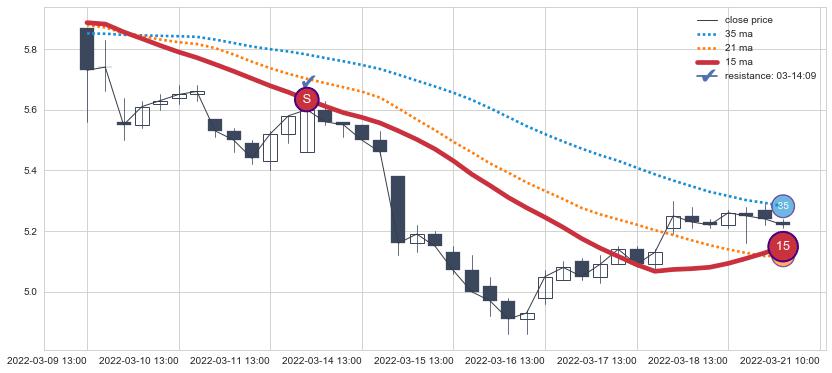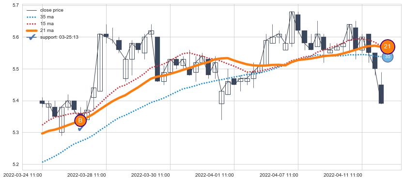 ⚂ 2022-05-24 14:00:00小时突然冒出一根大阴线,一下子下穿三条均线且收盘价收在各条均线之下