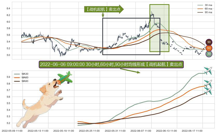 ⚀ 2022-05-20 09:00:00小时-2022-06-17 14:00:00小时显现 30小时-60小时-90小时均线 【战机起航】卖出点 看空信号,后市看跌,卖出