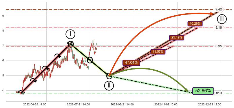 ➢ 循环浪继续向上【最低】位置(11-02:14, 6.95),匹配聚类样本比例24.60%, 可能性概率11.57%