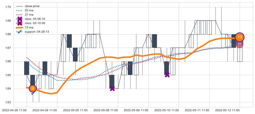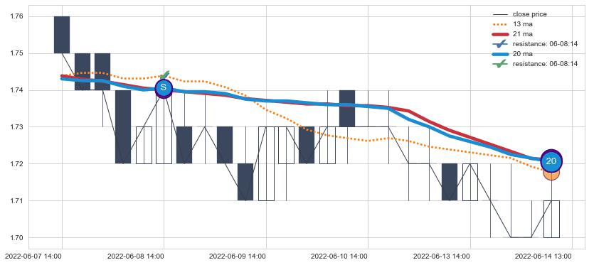 ⚂ 2022-07-21 14:00:00小时突然冒出一根大阴线,一下子下穿三条均线且收盘价收在各条均线之下