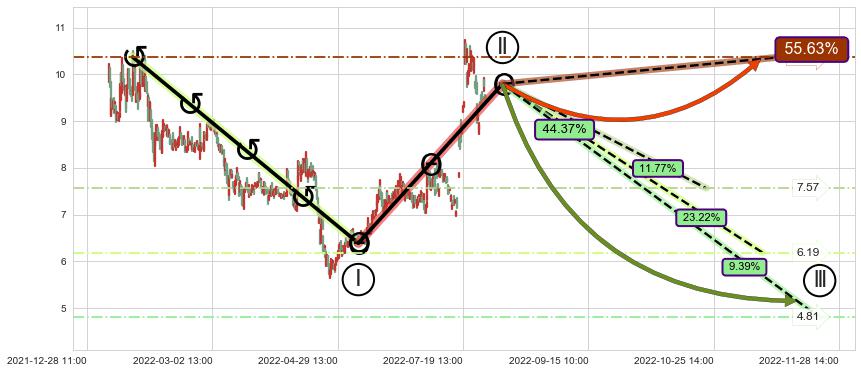 ♘ 支撑价格位8.07,可信任强度87.74%,距离最后交易2022-08-12 14:00形成的收盘价格9.42相差 -14.37%