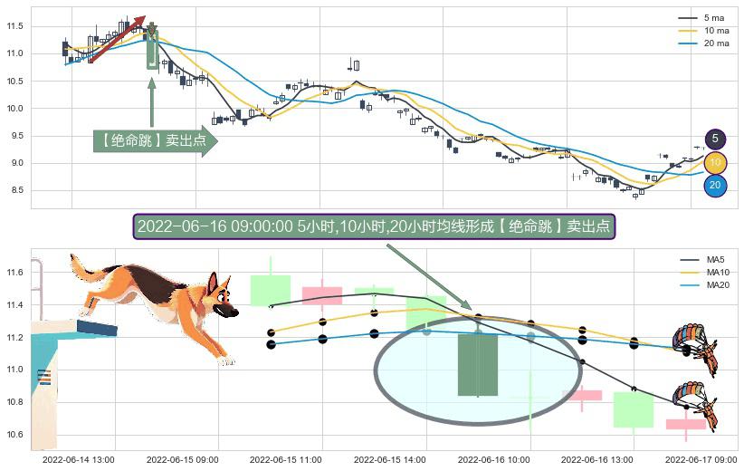 ⚀ 2022-06-16 09:00:00小时显现 5小时-10小时-20小时均线 【绝命跳】卖出点 看空信号,后市看跌,卖出