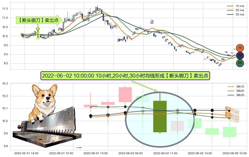 ⚀ 2022-06-02 10:00:00小时显现 10小时-20小时-30小时均线 【断头铡刀】卖出点 看空信号,后市看跌,卖出