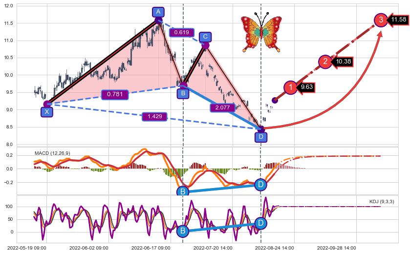 ➣ 已完成【蝴蝶】形态起点X: 05-19:09, 终点D: 08-05:13, 共174交易小时