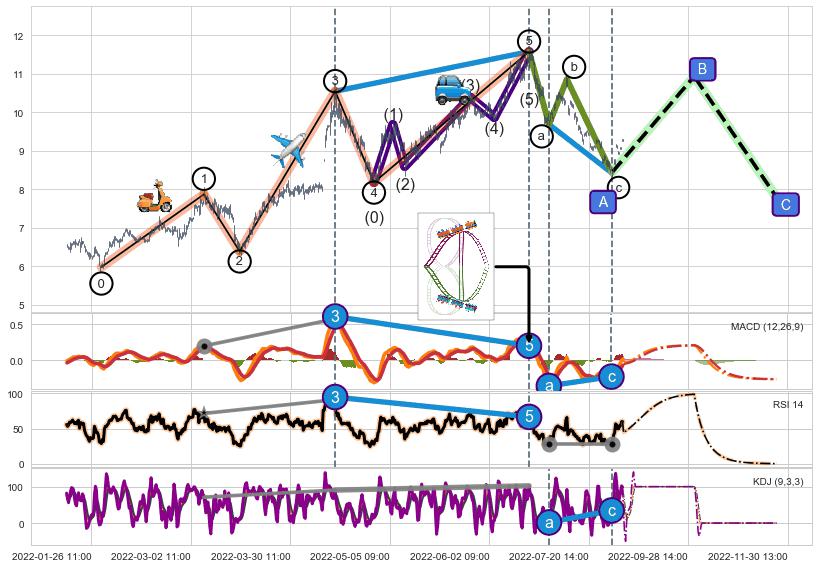| 5 🅚:吊颈线(上吊线) ➕ 🌊:波浪理论猜想上涨浪5已形成,猜想后续形成回调abc下跌(均值回复) ☞ 看空信号 ⇥ 【🅚线】交织【图形】⇥ 综合量化分数: 44 | > |