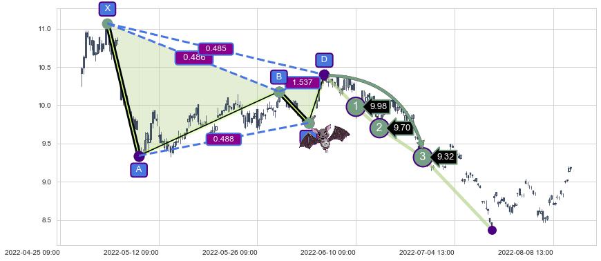 ➣ 已达成看跌【蝙蝠】形态全部的预期目标