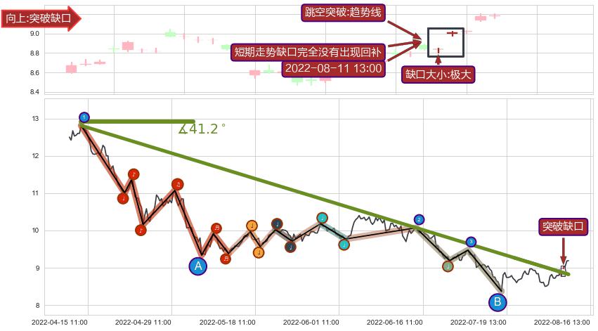 ➢ 2022-08-11 13:00形成:向上跳空【突破】缺口