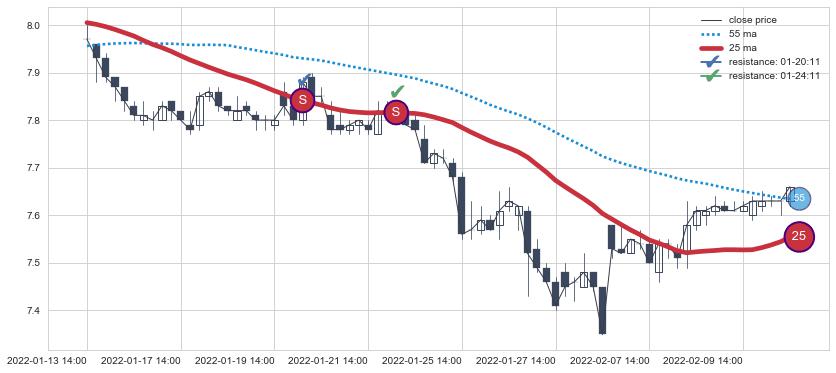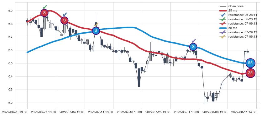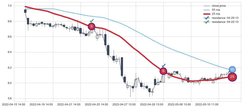 ⚂ 2022-07-14 13:00:00-小时均线向下破位,2022-08-12 13:00:00-小时重新上穿突破均线,均线支撑再次生效