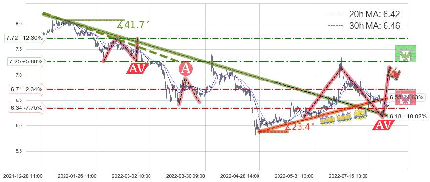 ♞ 20小时均线:6.42,30小时均线:6.46→ 快线<慢线