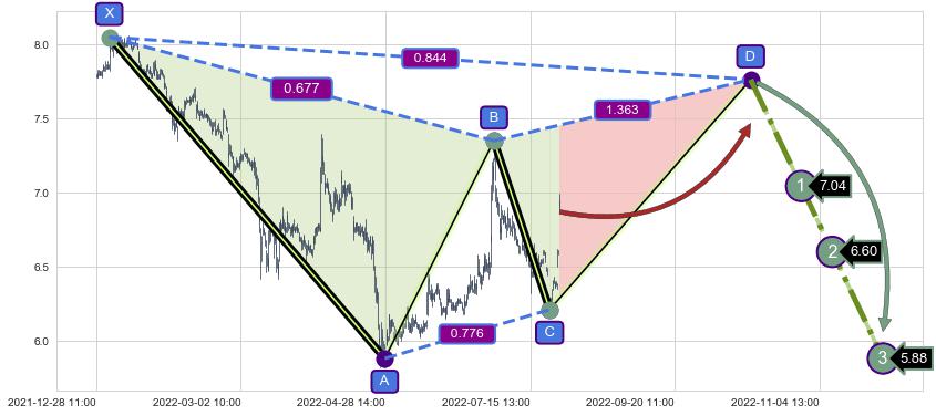 ➣ D点拟合预测价格7.76,距离最后交易收盘价格6.87相差 +13.00%