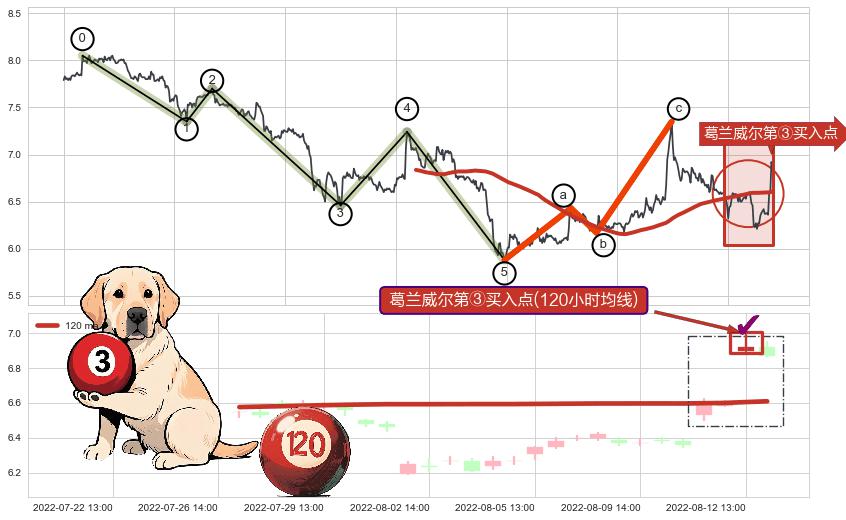 ➢ 收盘价(08-02:14: 6.23 )→再次回踩→第一根k线高点(07-27:14: 6.56 )