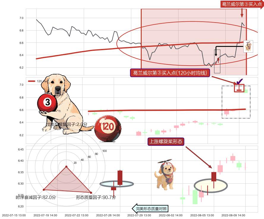 | 3 🅚:【蛟龙出海】买入点 ➕ 🌊:波浪理论下跌5浪延续反弹:猜想回调C点击穿突破,猜想持续蓄力反弹abc上涨方向(大周期趋势均值回复后小周期持续趋势跟踪) ☞ 看多信号 ⇥ 【均线】交织【图形】⇥ 综合量化分数: 54 | > |