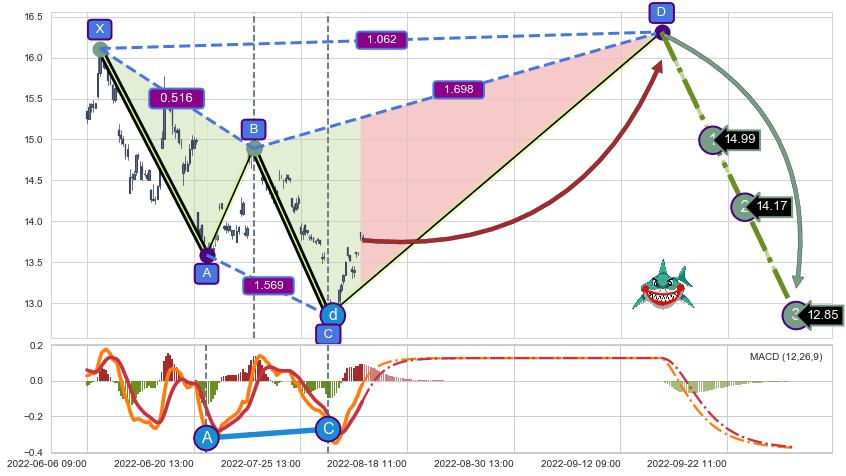 ➣ D点拟合预测价格16.31,距离最后交易收盘价格13.77相差 +18.47%