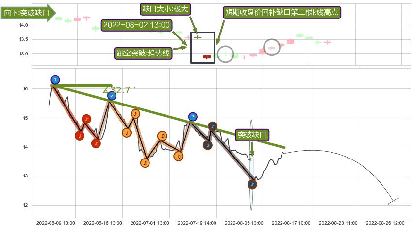 ➢ 2022-08-02 13:00形成:向下跳空【突破】缺口