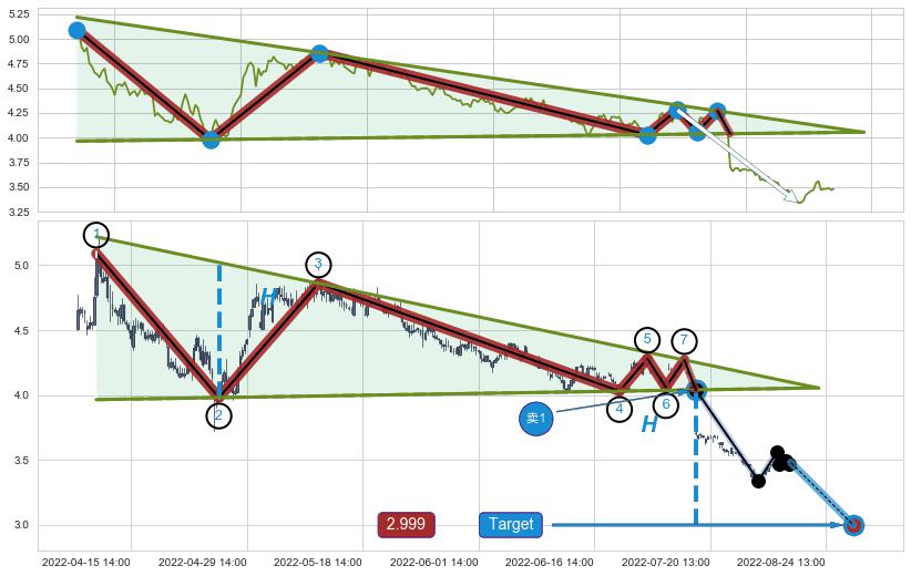 ➣ 最小中继整理跌幅→𝐇: 0.26000 (上平行阻力线与下平行支撑线的垂直距离)