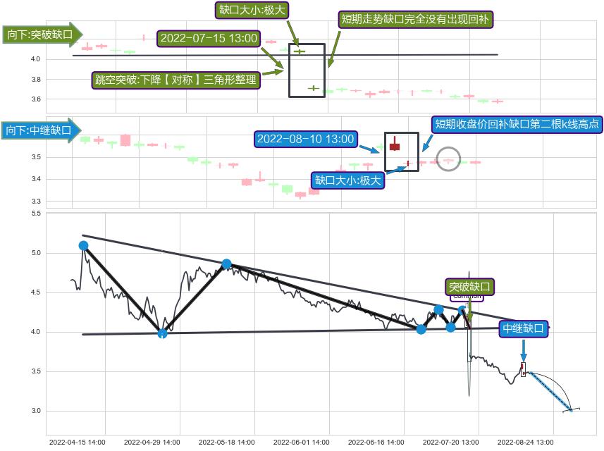 ➢ 2022-08-10 13:00形成:向下跳空【中继】缺口