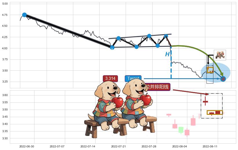 ➢ 【已确认突破】最后价格:3.480与最小【整理】第一目标价格→(08-18:14: 3.314 )相较: 下跌空间【较小】
