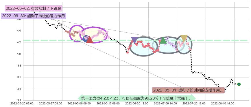 ♘ 阻力价格位4.23,可信任强度96.28%,距离最后交易2022-08-12 14:00形成的收盘价格3.480相差 +21.59%