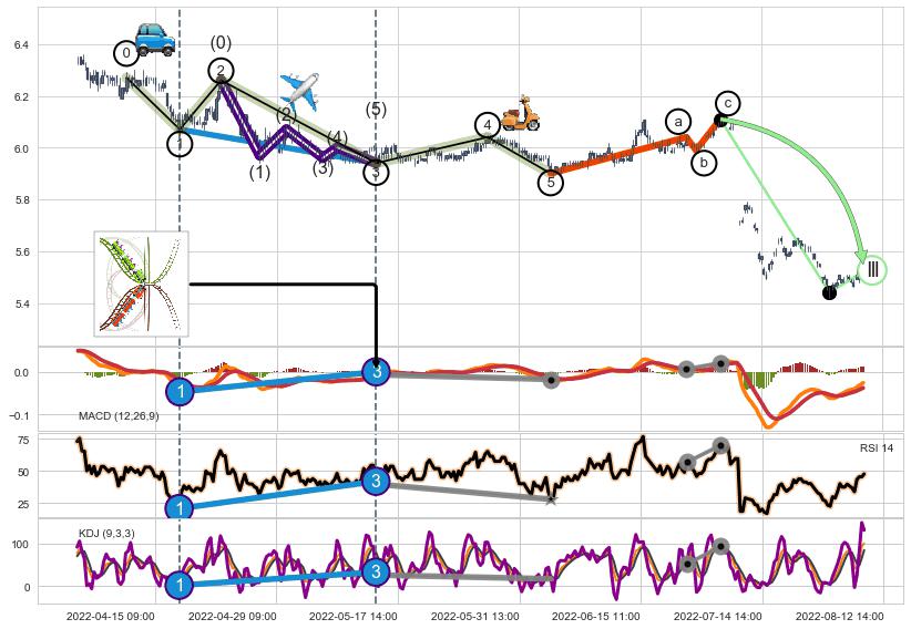 ➢ a,c调整浪MACD, RSI, KDJ走势都【未出现】背离,abc走势延续, 5浪反转概率增强