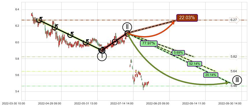 ➢ 循环浪继续向下【最低】位置(09-30:14, 5.46),匹配聚类样本比例25.83%, 可能性概率20.14%