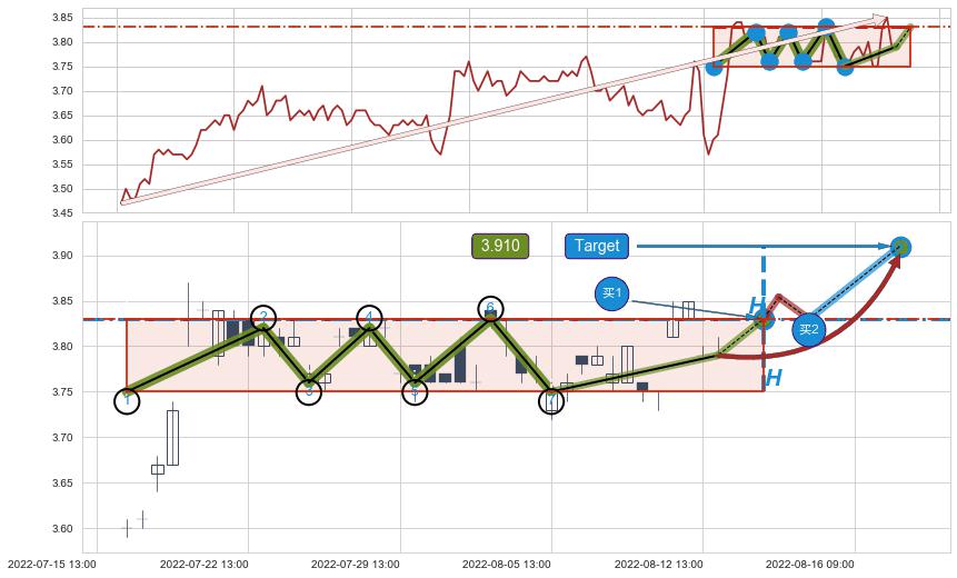 ➢ 【仅预测突破】最后价格:3.790与预测突破价格:3.830→【空间临近】后续最小【整理】第一目标价格→(08-16:12: 3.910 )