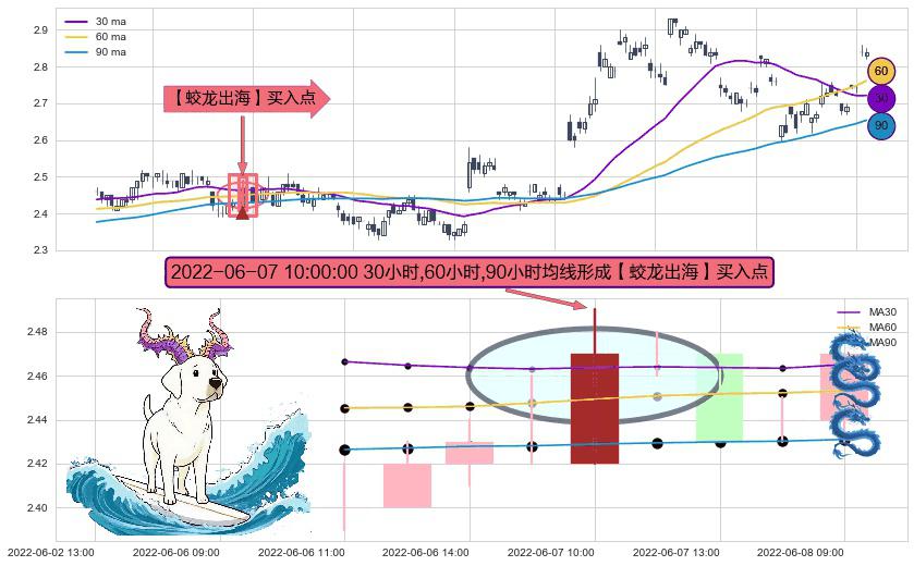 ⚀ 2022-06-07 10:00:00小时显现 30小时-60小时-90小时均线 【蛟龙出海】买入点 看多信号,后市看涨,买入