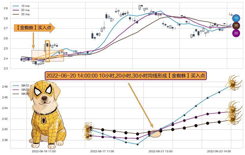 ⚀ 2022-06-20 14:00:00小时显现 10小时-20小时-30小时均线 【金蜘蛛】买入点 看多信号,后市看涨,买入