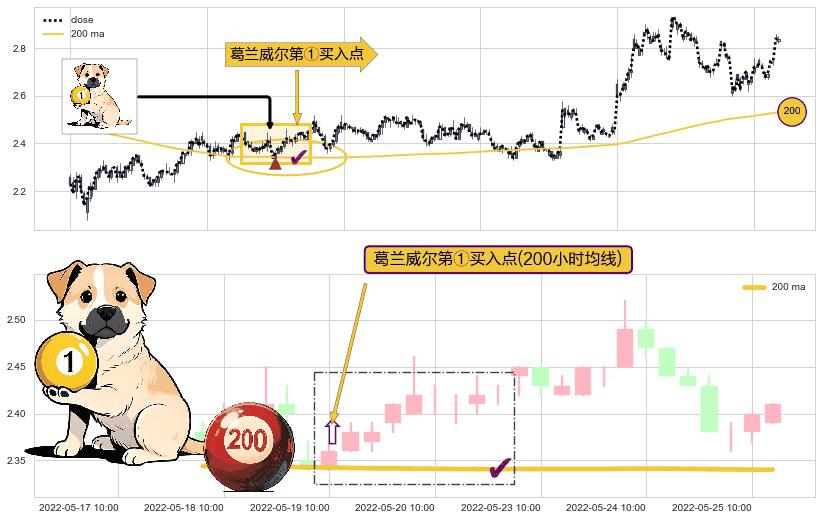 ⚀ 2022-05-19 10:00:00-小时显现 葛兰威尔均线 200小时均线 第买①入点 走势反转见底信号,后市看涨,买进信号