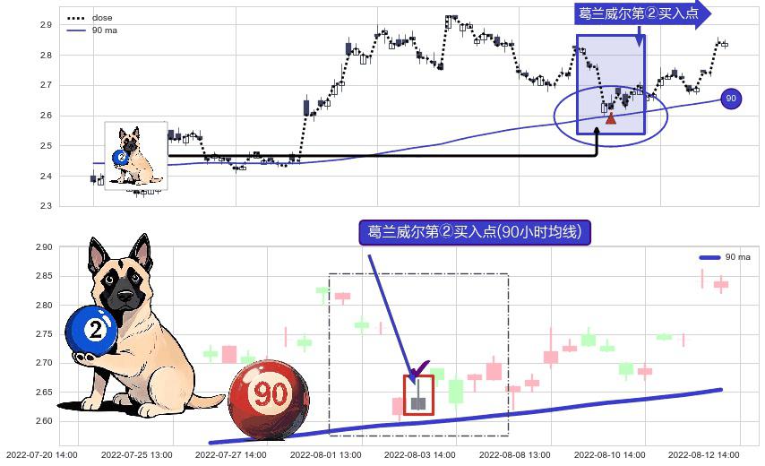 ⚀ 2022-08-02 14:00:00-小时显现 葛兰威尔均线 90小时均线 第②买入点 上升趋势的中继信号,后市看涨,买进信号