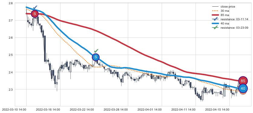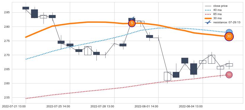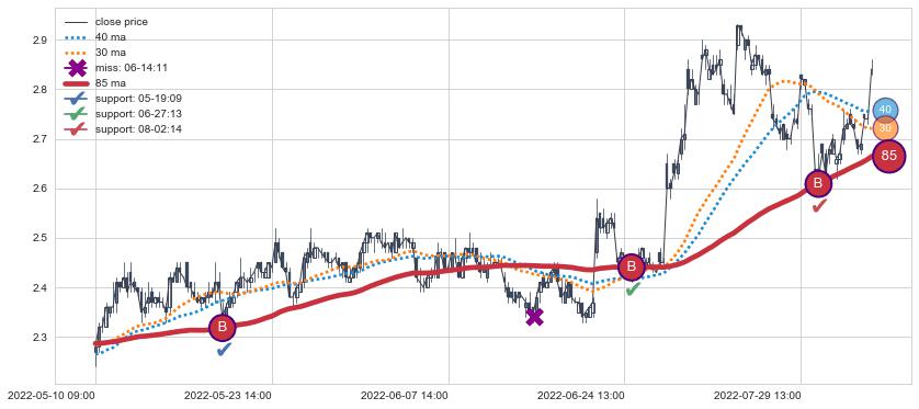 ⚂ 2022-06-14 09:00:00-小时均线向下破位,2022-06-20 13:00:00-小时重新上穿突破均线,均线支撑再次生效