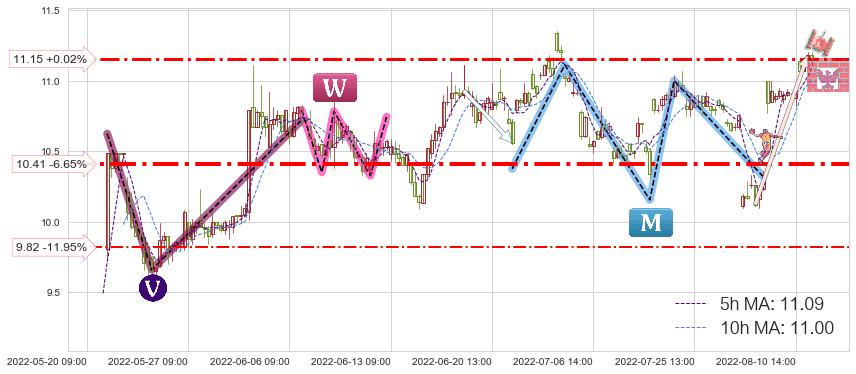 ♞ 5小时均线:11.09,10小时均线:11.00→ 快线>慢线
