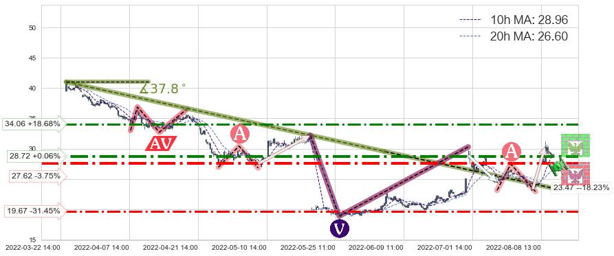 ♘ 阻力价格位34.06,可信任强度60.42%,距离最后交易2022-08-12 14:00形成的收盘价格28.70相差 +18.68%