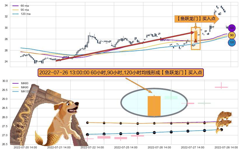 形态多维评估: ⚀ 2022-07-26 13:00:00小时显现 60小时-90小时-120小时均线 【鱼跃龙门】买入点 看多信号,后市看涨,买入