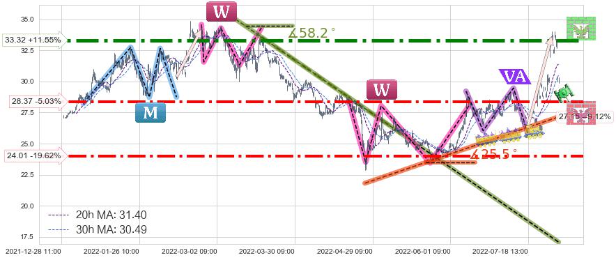 ♘ 阻力价格位33.32,可信任强度96.06%,距离最后交易2022-08-12 14:00形成的收盘价格29.87相差 +11.55%