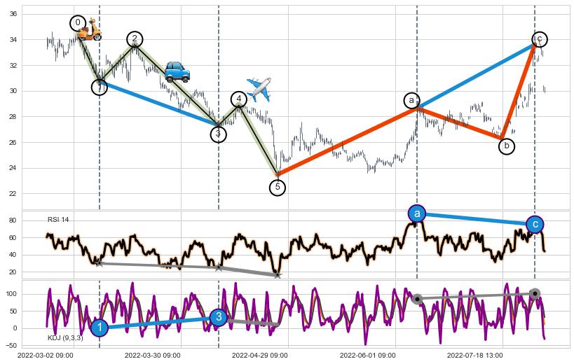 ➢ a,c调整浪KDJ走势未出现明显背离