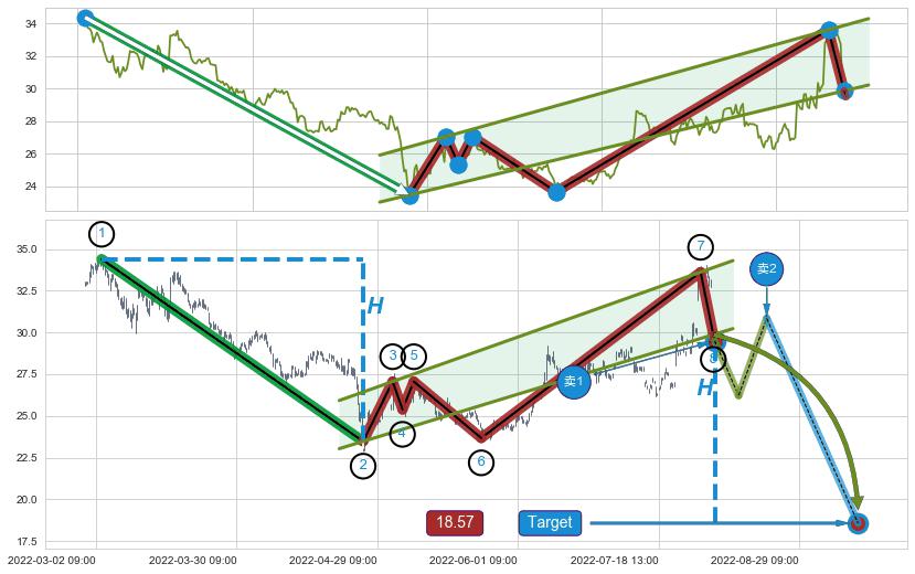 ➣ 最小中继整理涨幅→𝐇: 3.590 (𝐇旗杆的长度:旗杆起点→顶点)